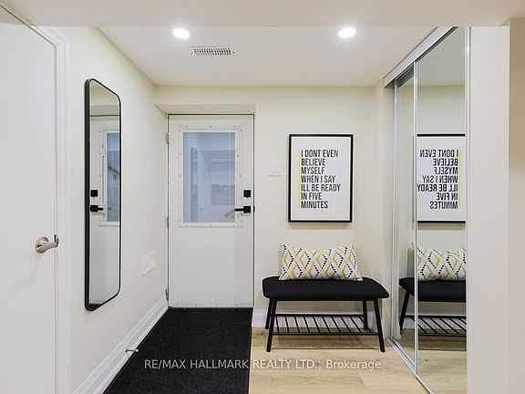 A stylish1 bedroom suite featuring vinyl flooring that seamlessly combines aesthetics and practicality. The modern kitchen is equipped with stainless steel appliances, elegant quartz countertops, and a convenient breakfast bar ideal for casual meals. The spacious bedroom features a generous double closet, offering ample storage space. Enjoy a beautifully designed three-piece bath, complete with an ensuite laundry for your convenience. This suite offers the unique advantage of two separate entrances, adding to its appeal. All utilities are included (heat, hydro, and water/waste), ensuring a hassle-free living experience. Additionally, 1 parking space is included and located in the laneway. The basement suite includes a private outdoor space on the side, in addition to access to a shared backyard. The Landlord will be responsible for landscaping and snow removal. Within walking distance to Metro, TTC, LA Fitness, and schools.