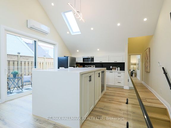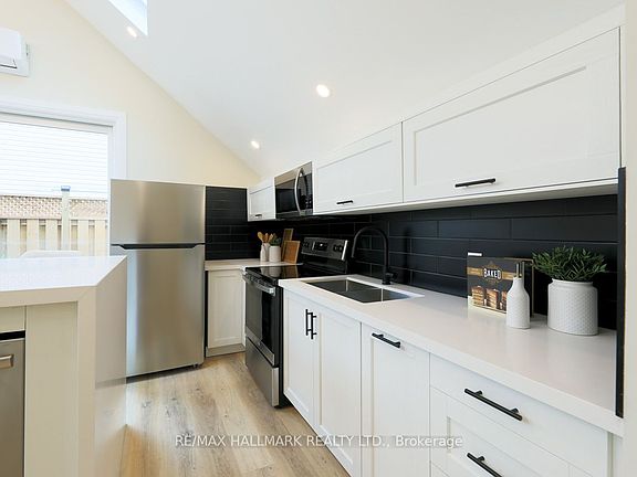 Introducing an exceptional standard of luxury living. Presenting a unique one-bedroom suite that seamlessly integrates modern elegance with practicality. Upon entry, one is welcomed by exquisite vinyl flooring that cohesively connects each area of the suite. The contemporary kitchen is equipped with sophisticated stainless steel appliances and features an oversized layout, providing ample space for culinary endeavours. The four-piece, spa-like washroom includes modern fixtures, complete with a relaxing tub and a stylish vanity that enhances the overall sophistication of the suite. The generously sized bedroom is thoughtfully designed, featuring a vaulted ceiling and a skylight that allows for an abundance of natural light. Additionally, it is equipped with double closets that offer substantial storage capacity for personal belongings. This suite is the ideal retreat for those seeking both comfort and style. Additionally, the 2nd floor features a private deck/patio for entertaining guests and a shared backyard patio for added convenience. Included is 1 parking space off the laneway. The Tenant is responsible for paying the hydro. The Landlord will be responsible for water/waste, landscaping, and snow removal. This location is unbeatable, with the Metro and GO Station within walking distance, the TTC at your doorstep, and nearby Victoria Park Subway, as well as LA Fitness and schools.