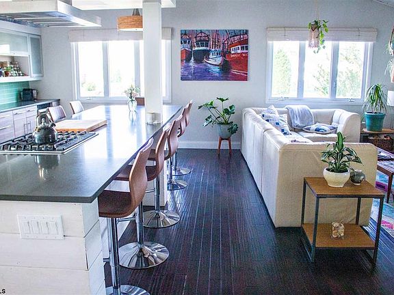 This fully renovated, 1,400 sq. ft. 3 bedroom, 2 bathroom ranch was designed for entertaining. Located along a well-kept street with friendly, respectful neighbors in the center of the golf course. An easy walk to the club house, the beach and the bay. An open floor plan with high vaulted wood ceilings and exposed beams gives an airy, expansive feeling to the home. Spacious master bedroom w/ large walk-in closet, ensuite bathroom and plenty of room for a king-sized bed and additional furniture. Both bathrooms remodeled with new tile, modern fixtures, refinished tubs and high-end toilets. The kitchen was designed by a Chef and an Architect for a space that is as functional as it is attractive. The large island comfortably seats 8-10 people and the sleek, modern cabinetry holds more storage than you could ever dream of. Brand new refrigerator and wine/beer fridge with matching stainless dishwasher and gas range with chic hood. Easily accessible laundry off the kitchen. Large front deck with marine grade stainless steel cable railing and paved back patio that's perfect for outdoor cooking and entertaining. Larger than average back yard with beautiful landscaping, raised garden beds and a new fence. Gas heat and central air. Hardwood floors throughout with carpeted bedrooms and tiled kitchen and bath. 2020-08-31