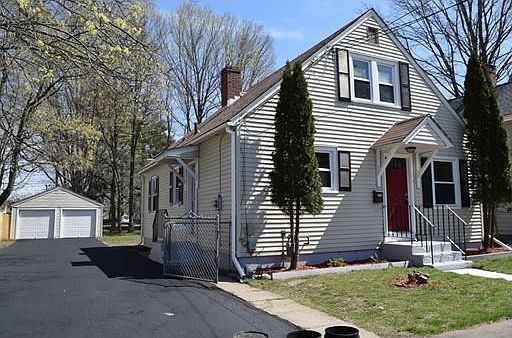 Nicely updated vinyl sided cape style house set on level lot with oversized detached 2 car garage, brand new kitchen w/granite and new stainless appliances, updated bath and a half, partially finished basement, freshly painted interior w/neutral decor, gleaming hardwood flooring, new replacement windows, new roof, BBHW gas heat, new hot water tank and a fenced yard. Nothing to do here but move right in!!