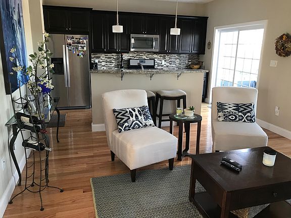 Newly constructed end unit townhouse with plenty of natural light tucked away in a quiet area of Hooksett. Carriage Manor is a community of well appointed homes, offering beautiful valley views and open spaces. Chic 3 bedroom, 3 bath, spacious open plan living room, entertainment kitchen with deck, and high first floor ceilings. Master suite includes vaulted ceiling, walk in closet, double sink granite counter and over sized tile shower. Features include: granite counters with tile back splash, upgraded wood cabinets, hardwood floors, complete appliances including second floor laundry, and a 1st floor gas fireplace. Enjoy a well appointed finished lower level walk out living area with fireplace. Energy efficient with natural gas heat and central air. Large indoor storage area with work bench and 1 car attached garage.