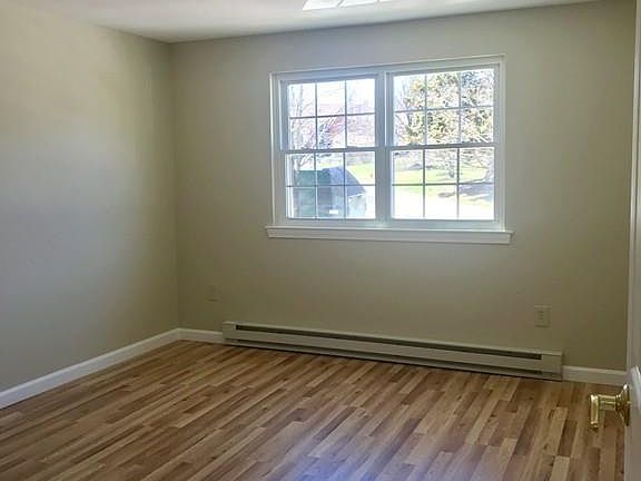 Beautifully remodeled 2 bedroom condo featuring brand new wood floors and fresh paint. The kitchen offers new oak cabinets, countertop, ceramic tile flooring, GE stainless steel appliances including, refrigerator, glass top stove, dishwasher, and OTR microwave. The bathroom has new fiberglass tub, surround, toilet, vanity, medicine cabinet, towel bars, and Delta valves. New heating elements and thermostats have been installed. Electrical features new plugs, switches, ceiling fan, and light fixtures. Thermal windows were replaced 4 years ago. Small storage space is available in the basement. The back yard has a picnic table and gardening area. Unit has ample parking, pool and conveniently located to HCC and I-91.Condo fee pays for hot water, trash pickup, water/sewer, landscaping, snow removal, and master insurance. Don't miss out!