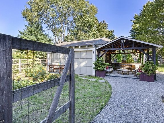 Fall in love with this delightful vintage colonial in the heart of Bernardsville. Lots of charm, accented with mid century modern flair! With red oak HW floors throughout, sunlit rooms, built in cabinetry and timeless features, this classic home continues to offer so much. The eat in kitchen provides a simple and uncluttered style with SS appls, calcutta gold honed marble & butcher block finishes. A 3 season front porch leads you to the bright and airy living room that opens to the dining room. A convenient mud room and powder room off the kitchen is accessed by a dutch door that in turn leads out to a fenced in garden area w/ a fabulous covered party space! A sizable second floor offers 3 beds and a bath with orig tile. Great use of space by current owners. Walk to town, park and train. Great schools!