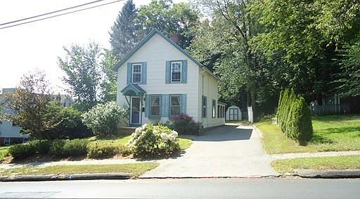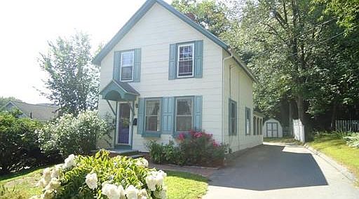Walk to the center of Florence in minutes from this charming, cozy, two story home with sunny floor plan and open rear yard for entertaining and recreation. Hardwood floors on first floor with flexible room layout including formal dining, den, living room and fully applianced eat-in kitchen. The rear room is currently used as a first floor bedroom with adjacent full bath and closet but may also be a large family room. Spacious side porch is screened providing for a very nice warm weather sitting and dining area. Second floor features two bedrooms and full bath. Very convenient location to bike path, Look park , Northampton center, schools and parks.