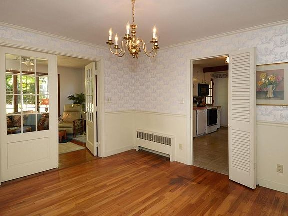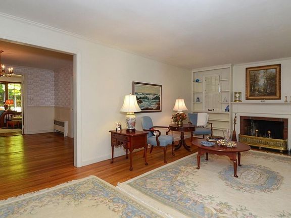 Wonderful opportunity to live comfortably on one level with second floor potential. Pleasant fireplaced living room with built in bookcases. Separate dining room. Hardwood floors, applianced eat in kitchen with bright and sunny window greenhouse. Access from kitchen to rear yard/deck, garage and basement. Two bedrooms plus tiled bath. Den also with access to deck and private rear yard / stone wall. New connection to sewers. Young roof, recent exterior paint. Awnings will remain to keep out the bright sun.. House sited on dead end street with exceptional access to Rt. #9 and shopping.