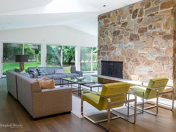 California Inspired Modern Home Gutted To Studs And Rebuilt (2017) Reconfigured And Expanded With State Of The Art Amenities. Courtyard Entry with auto camera , plus reflecting pool is your entre' to walls of glass and soaring ceilings. Amazing and innovative use of space . State of the art gourmet kitchen with top drawer commercial appliances . The magnificent kitchen flows into an expansive Great room with soaring ceilings and glass surrounds . Amazing master suite w adjacent outdoor shower, plus 4 bedrooms , 3 with ensuite baths. Embraced by walls of glass, the formal dining room melds the verdant outdoors with the warmth of the stunning interiors. Enormous finished basement with maids and bath and second laundry. New Pool, tucked away and landscaped for total privacy. New cabana with bath, changing rooms, sitting room, plus roof top deck. Hiking trails abound. Woodland Vistas From All Rooms. Fully irrigated Living Wall. Smart Home. A dreamy Oasis of Tranquility Awaits you. 33 minutes NYC via LIRR.