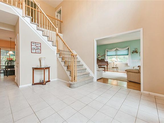 PRICED TO SELL! Set in a serene cul-de-sac of a dozen custom homes, this brick-faced Colonial sits majestic and stands backed to a small wooded conservation area for your privacy. Step into the 2-story entry of this fine home, you'll find all the space you need! The updated kitchen is light & airy featuring antiqued granite counter & lighting displaying fine cabinetry & tile. From there, you'll see your family room and fireplace.The two sets of French doors hold lovely views of the trees and grant access to your deck complete with gas-grill cooking. Upstairs is as spacious with generous sized bedrooms. There you will find tons of storage. A full walk-out basement and 2-car garage finishes the package. Nestled away but close to all!