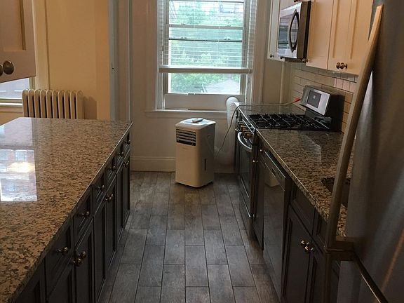 Recently renovated one bedroom on the first block of Marlborough St! This unit has an open kitchen/living room with a large breakfast bar, stainless steel appliances, granite countertops, and plenty of cabinet storage. Hardwood floors throughout, closet space, and a modern bathroom. Laundry in building. Common roof deck! Heat and hot water included in rent