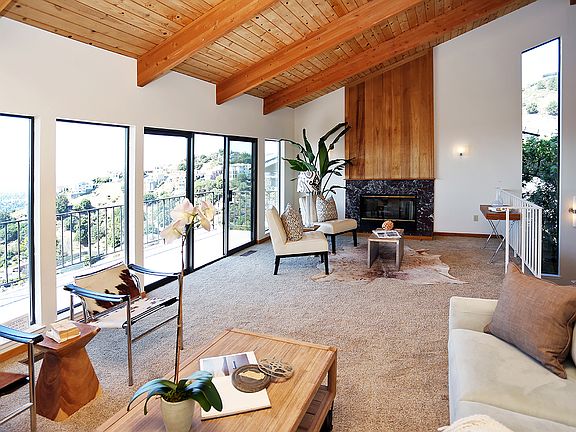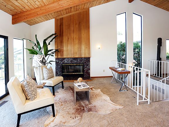 Breathtaking views of San Francisco and the Golden Gate Bridge at this sophisticated Hiller Highlands townhouse. Desirably located on a prestigious cul-de-sac, this property showcases a spacious open floor plan featuring a dramatic living room w/ vaulted ceilings, elegant dining area & master retreat.