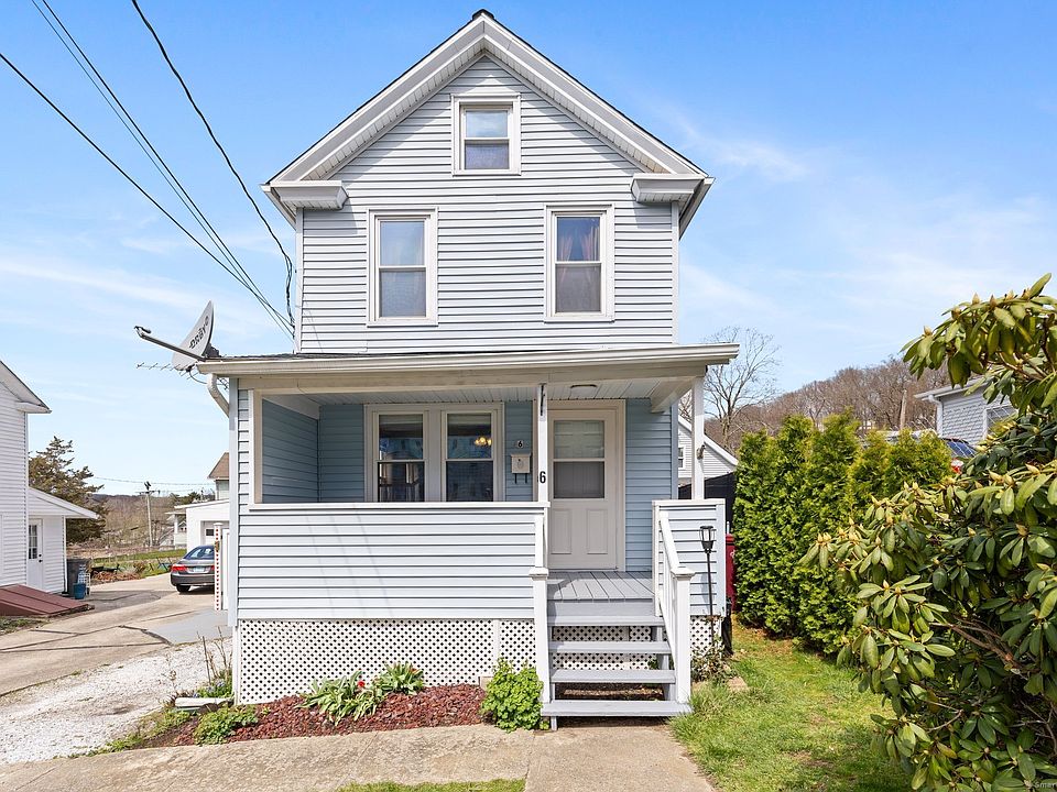 This meticulously maintained home, located in an ideal area-Commuters dream, features 2 bedrooms, 1 full bath, and an updated eating kitchen with access to a delightful three-season porch overlooking a private, flat fenced-in backyard complete with a fire pit for summer gatherings. The main floor encompasses a spacious living room flowing into a cozy family room and a full bathroom. At the upper level, the bedrooms showcase hardwood flooring, generous closet space, upgrades including insulation, thermal pane windows, never siding, and roof. A newly installed gas line allows for potential natural gas conversion. The basement offers a laundry room and ample storage space, complemented by two sheds outdoors for additional storage needs. Discover the perks of a single-family dwelling without condo fees in a delightful neighborhood with fantastic neighbors.