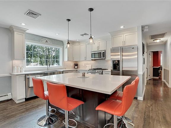 New, New, New!! Entire house has been completely redone over the last 3 years. Stunning kitchen with oversized quartz island & stainless steel appliances, hardwood flooring throughout, fully renovated bathrooms, freshly painted, custom closets in bedrooms, wet bar with storage for entertaining at your pool parties or just enjoying a night by the fireplace, brand new pool deck & saltwater pool with heater, oversized workshop & more. Fabulous commuter location, private lake/beach access, close to schools. This home won't last & is sure to impress!