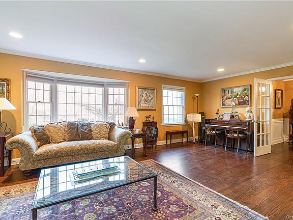 This Quaker Ridge home has it all-convenient location, picture perfect, & fully renovated. This sprawling custom split level boasts a gourmet chef's EIK with multiple work stations, 2 sinks, stainless appliances, custom wood cabinetry and ample storage. The spacious living room, dining room and family rooms flow into one another making it perfect for entertaining. Beautifully paneled library with the decorative stone fireplace lends itself to a home office or study. All bath's have been custom designed. 2 gas burning fireplaces. This house has a full house generator. New HVAC system. The large deck, with easy access from the kitchen, overlooks the level private backyard. Excl: 2 Chandeliers in MB&DR, Ref. in Basement, Chest Freezer in Basement, Flowered sconces in MB&LR, TV s in Den and Basement. Quiet tree-lined residential street. Minutes to the Quaker Ridge ES, highways & shops. Easy access to Hutchinson River Parkway. 30 min express Metro North train to Grand Central. A real gem!