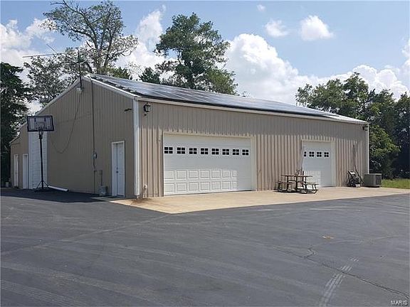 Beautiful park like setting on 4.55 acres. 3 bed ranch home with 3 car over sized attached garage with garage door openers. Home has 6 panel doors/trim, beautiful wood laminate flooring in living room and main floor bedrooms. Kitchen has gorgeous oak cabinets with ceramic flooring, side by side stainless steel refrigerator, smooth top electric stove and microwave stays. Main floor laundry, 2-50 gallon hot water heater, large oversize jet tub in hall bath, alarm system, solar blankets in attic, solar panels on home and outbuilding. Approximately $900 year for the electric bill. For the gentlemen, 48' x 50' detached building that is partially finished with heat and air, 3 overhead doors - 12'x11', 8'x9', and 8'x16'.