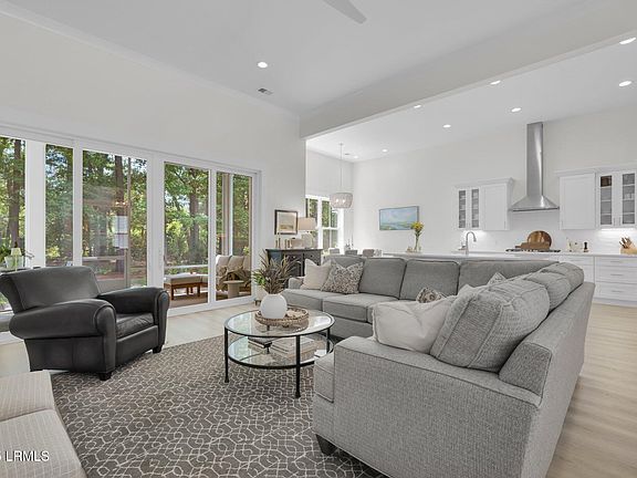 Act quickly—this immaculate 2022 home is move-in ready with designer touches. The light-filled open floor plan features 12' ceilings, shiplap accents, and a gourmet kitchen with quartz counters, Monogram gas cooktop, and white cabinetry. The spacious primary suite offers a spa-like bath with zero-entry shower, and two first-floor guest rooms have private en-suite baths. Upstairs is a 4th bedroom with bath and great storage, including a walk-in floored attic. Plantation shutters throughout and a screened porch add charm. Located in the gated Crescent community with low HOA and resort-style amenities—pool, pickleball, and tennis—minutes to Hilton Head beaches.