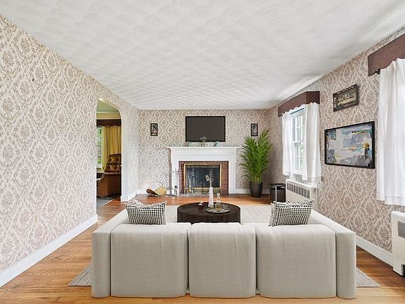 Investors, flippers and first-time buyers take notice! Bring your vision to this solid ranch located in Woburn MA. This 3-bedroom, 1-bath home offers hardwood floors throughout most rooms, a fireplaced living room with exterior access, and a functional eat-in kitchen with vinyl flooring. The dining area features custom built-ins and picture windows for added charm. The full bath includes ceramic tile and a tiled tub surround. An attached garage and unfinished basement provide potential for added value. Outside, you'll find a sloped driveway, patio space, and classic stone wall accents. While this home may need cosmetic updates, it’s a great opportunity for buyers looking to build equity in a convenient location near public transit, shopping, parks, and major routes. Ideal for those ready to make it their own. Home is being sold as-is — don't miss your chance to explore the possibilities. Offer deadline - 5PM TUES 06/10/2025