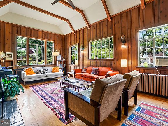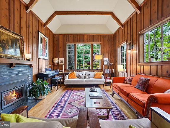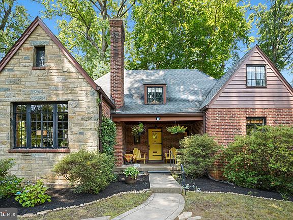 SIMPLY ENCHANTING - like a scene from a fairy tale! This captivating brick-and-stone Tudor home exudes magic, offering a variety of thoughtfully designed spaces that combine period charm with modern convenience. Built in 1932, this mesmerizing Tudor is ideally situated in the Sligo Park Hills neighborhood of Silver Spring, just steps from parks and trails! Upon entry, you'll be greeted by a classic covered front porch, inviting you to step inside and explore the enthralling living spaces within. Three levels of original architectural details include incredible hardwood floors throughout, glass doorknobs, custom millwork, and elegant lighting. The warm and inviting entry foyer leads to an alluring living room with a wood-burning stove fireplace insert, a 12-foot barreled and beamed ceiling, exquisite pine-paneled walls, and display shelving. This room is truly magazine-worthy! Beyond the living room, you'll find a formal dining room with a bay window, an archway, and access to the delightful side patio with backyard views. The renovated European-styled kitchen is a showstopper with Quartz counters, sleek cabinetry with soft-close drawers, a gas range with 5 burners, subway tile backsplash, and access to the backyard. The original pine floors in the kitchen have been restored and are simply beautiful. The main level is complete with two spacious bedrooms, a full bathroom, and multiple closets. The versatile upstairs could be utilized as an incredible primary bedroom retreat with two separate offices. There is a light-filled sizable sitting room with a large picture window, built-in bookcases, and delightful nooks. Off the sitting room are two rooms that could be utilized as offices or a nursery; one of the rooms has convenient built-in cabinets. The primary bedroom is flooded with light and offers a deep closet with access to extensive open eave storage. There is a ceramic tile bathroom and linen closet on this level as well. Downstairs, there is a HUGE walk-out recreation room large enough to accommodate a pool table! The recreation room is filled with light, has attractive wood floors, and access to the yard via sliding glass doors. There is a full kitchen, a second laundry, a full bathroom, a walk-in closet, and copious storage on this level. The storage garage offers incredible space, providing ample room for overflow storage! Outside, you’ll find a covered front porch, a side porch, a whimsical treehouse, and established mature trees and landscaping including a variety of azaleas, hydrangeas, and stone pathways. The rear yard offers privacy and a secure space for relaxation and play. There is a shared parking pad outside of the home with ample parking. Enjoy living in Sligo Park Hills; this location offers all the allure and convenience of this very special area. The neighborhood enjoys a warm sense of community, as well as ready access to Sligo Creek Trail, shopping, restaurants, and entertainment in Downtown Silver Spring and Takoma Park. Only 1.3 miles to the Takoma Metro Station and quick accessibility to multiple bus lines. You’ll love living here!