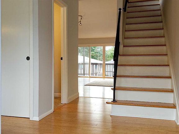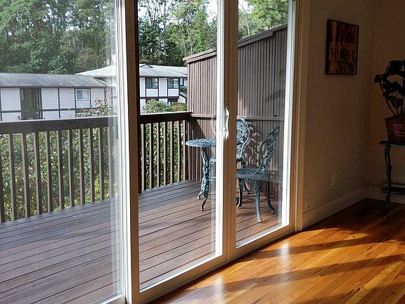 Light filled end unit with 2-car garage! New custom designer eat-in kitchen with soft close drawers and doors and granite countertop. Stainless appliances. Spacious living room that opens to large deck. 1st floor powder room is fully renovated with ceramic tile, granite topped vanity. Upstairs is master bedroom, also with it's own deck. Two additional bedrooms and a renovated bathroom with ceramic tile floor. Lower floor includes large light filled family room and direct access to garage. Glowing hardwood floors on 1st and 2nd levels. Generous storage throughout this home. Relax in your private garden get-away filled with perennials that bloom throughout the year. Lots of parking with up to three cars near the front door and two cars in your own driveway. High efficiency water heater saves you money. Stacked washer/dryer units are included. HOA includes use of swimming pool, tennis courts and kids playground. $651 tax savings available with STAR. Two pets allowed. Nothing to do except move in. Price chopped for quick sale.