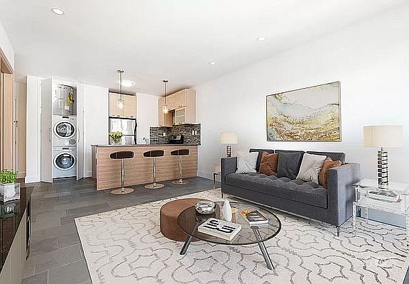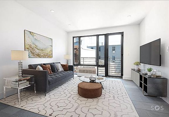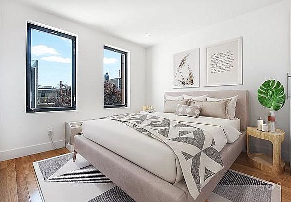 OUR OPINION: NO FEE! This one bedroom home includes beautiful finishes including slate and hardwood floors, big windows for lots of light, and built in closets. There is also a private Juliet balcony. The modern kitchen includes a dishwasher and a microwave. The unit also has a washer/dryer and has air conditioning. Pets are welcome. THE LOCATION: The building stands close to the corner of Richardson Street and Monitor, in Williamsburg. The distance to the train is roughly 10 minutes by foot. We love the immediate surroundings, and how peaceful the street is (people do not use this portion of Monitor Street other than residents since there is a loop of one-ways). Surrounding the building are several unique condo buildings, and Graham Avenue is steps away, lined with restaurants and shops.