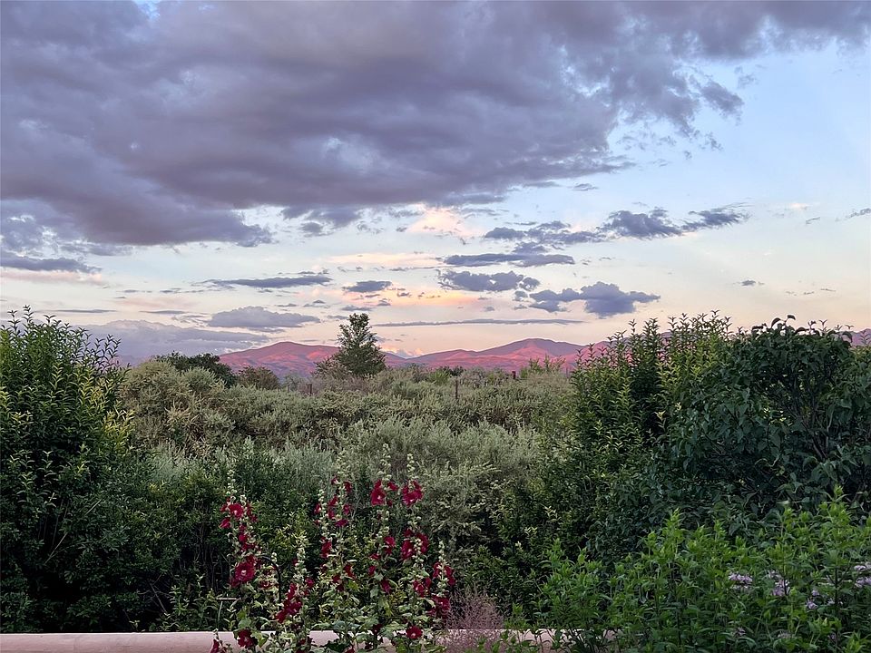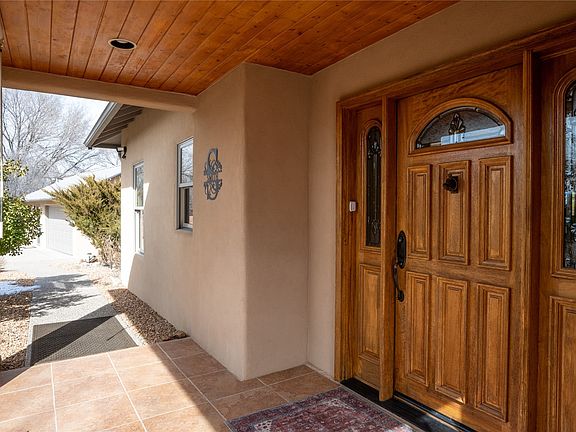Situated privately at the end of the road lies this pastoral setting in the beautiful Jacona valley. Natural light is abundant thoughout this open concept home and studio with high ceilings and vigas. Outstanding views of the Sangre de Cristo mountain range amid mature landcaping. Home was designed and built by renowned architect, William Agnew. Fabulous scenic hiking along the Pojoaque river just across the road. Peaceful neighborhood with amazing neighbors. Home is within the path of migratory birds following the Rio Grande many unusual and beautiful species can be observed throughout the year. Fantastic irrigation infrastructure and surface water rithts. Easy communte to both LANL(18 min) and Santa Fe (20 min).