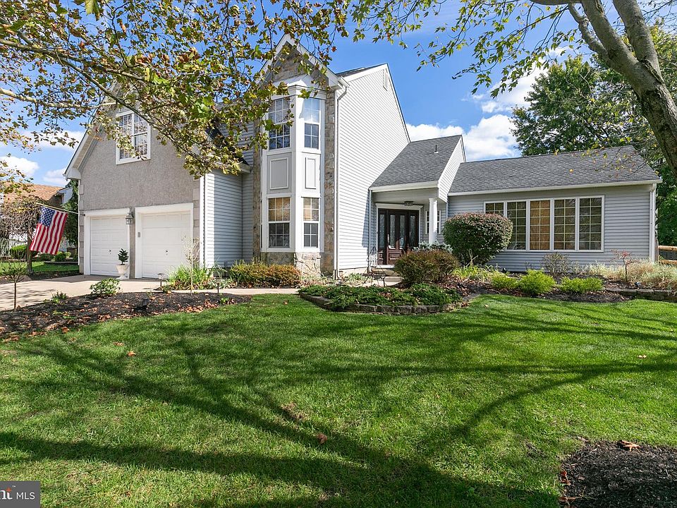 Welcome to this spacious and charming 4-bedroom, 2.5-bathroom home nestled at the end of a quiet cul-de-sac in desirable Stonegate section of Mt Laurel. With its inviting design and numerous amenities, this property offers a perfect blend of comfort and elegance. As you approach the home, you'll notice the well-maintained exterior with lush landscaping, creating an inviting and serene atmosphere. The front yard is beautifully landscaped, offering great curb appeal. Upon entering the home, you are greeted by a welcoming foyer that opens up into a generous living area filled with natural light. The open concept design seamlessly connects the living room, dining area, and kitchen, making it ideal for both family gatherings and entertaining guests. The spacious kitchen is equipped with ample countertop space, and plenty of storage, making it a chef's dream. A conveniently located breakfast area provides a casual dining option, and the adjacent formal dining area is perfect for hosting dinner parties. One of the standout features of this home is the addition of a sunroom. This bright and airy space, flooded with natural light, is versatile and can serve as an additional living area, a relaxation space, or even a home gym. It overlooks the beautifully landscaped backyard and creates a serene oasis for year-round enjoyment. The home also boasts a dedicated office area, perfect for those who work from home or require a quiet place to focus on tasks. The office is situated to provide a peaceful and productive environment. Upstairs, you'll find four spacious bedrooms, each with its own unique charm. The master suite features a private en-suite updated bathroom, offering a deep soaking tub, a separate shower, and a double vanity. The walk-in closet provides ample storage for all your wardrobe needs. The remaining bedrooms are generously sized and share a well-appointed full bathroom with a double vanity, ensuring convenience and comfort for the entire family. The backyard is an outdoor oasis, with a patio area perfect for outdoor dining that offers a peaceful retreat for enjoying nature. The cul-de-sac location ensures a safe and quiet environment for your family. This home also features a two-car garage, a laundry room with plenty of storage, New Appliances, newer roof and a tankless hot water tank. Located in a desirable cul-de-sac, this home provides a tranquil and secure environment while being conveniently close to schools, parks, shopping centers, and commuter routes. This property offers the perfect blend of comfort, style, and functionality. Don't miss your chance to make this house your new home!