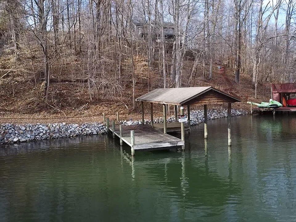 Great Waterfront Lot with Covered Boat Dock! Enjoy main channel views but have privacy and protection from high traffic within a cove. Fantastic location both by water and by land! Site plan for 4-bedroom septic/drain field, well and driveway locations identified, boat dock already in and approved by AEP! Paved cart/walking path to dock already in!