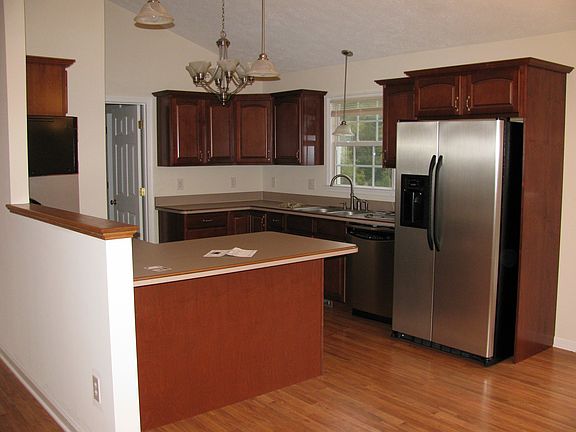 3 bed, 2.5 bath ranch on 2 acres with split floor plan (master suite separate from other bedrooms), walkout basement, and 2 car garage. Stainless steel appliances, cherry cabinets, ceramic tile and hardwood flooring.