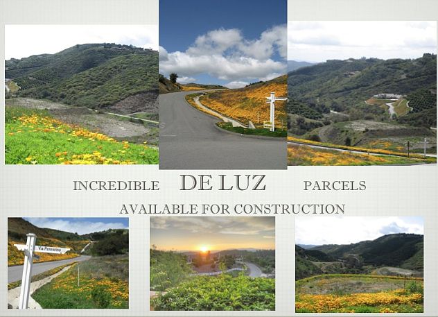Beautiful lot in the prime De Luz neighborhood of Temecula. New construction going on up the street! This lot has power at the street and a water meter is already paid for, you just have to pay to get it installed. The lot has a rough graded pad and rough drive way cut in. Ready to be built on! Lot is in a HOA, about $60 a year and minimum house size of 2500 sq ft. Buyer to verify all information. A total of (7) lots are available. For sale by owner but, willing to work with an Agent with a Buyer.