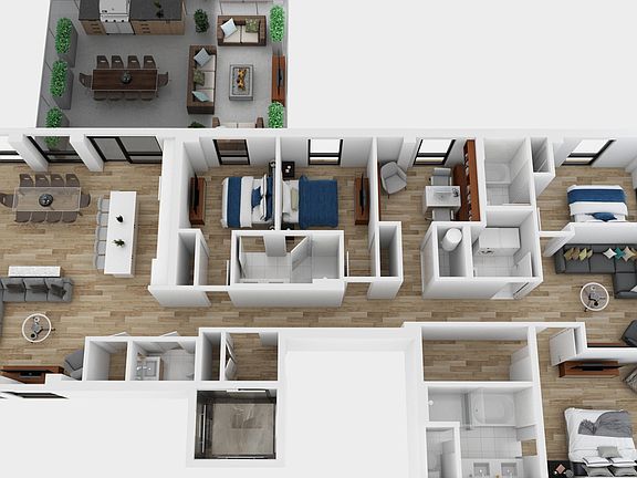 Residence 3D at Madison+Carpenter will feature private elevator entry, 4 large suites, an office/homework area, private family room, huge living/dining/kitchen great room in all glass and 500 SF of private walkout terrace living. Terrace is finished in pavers and includes gas, water, and electric hookups. Expect tons of sunshine with your west-facing open-air terrace. Living room offers incredible view of Willis Tower and just steps from many of the best restaurants, spas, parks, and drinks in the city. Two parking spaces INCLUDED in price. This home lives huge with well OVER 3000 sqft of total living on one floor (2564 SF Interior+500 SF Exterior). Madison+Carpenter is a boutique building with only 13 homes available and 10 homes are already sold. All homes at Madison+Carpenter feature private elevator entry, 4-5 suites, 1-2 offices, separate family room, huge kitchens, dining and living rooms, great views, largest private outdoor spaces in the West Loop, and 2 parking spaces included. Total living spaces from 3000-5700 Sqft (Interior & Private Built-Out Exterior Living). Priced from $2M-$3.5M.
