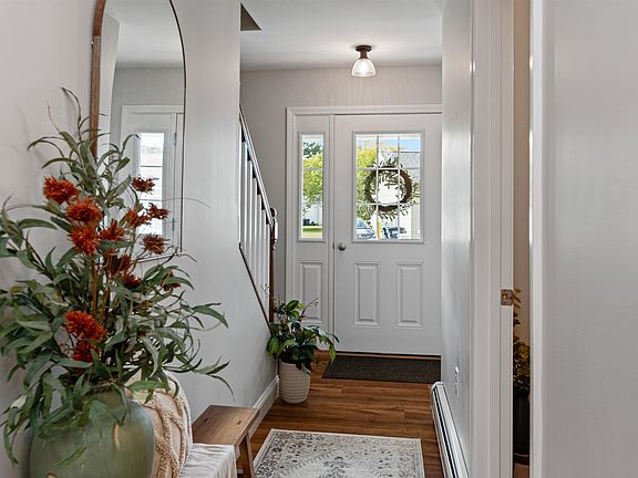 Bright, open, and inviting, this stunning 3 bedroom, 2.5 bathroom Milton Colonial built in 2020 is ready for its second set of owners! Upon entry from the lovely covered front porch, step into the open-concept main floor bathed in natural light. The kitchen offers granite countertops, a center island, pantry, and stainless steel appliances; sure to make cooking a breeze. Overlooking the backyard, the dining area allows easy access to the back patio via sliding glass doors for seamless indoor/outdoor living. Open to the dining space, the living room is tranquil and cozy- a perfect place to unwind. The main level also features a convenient ½ bathroom, access to the attached two-car garage, and entry to the unfinished full basement with the potential for additional finished space. Upstairs, find the primary suite, boasting large windows, a ¾ ensuite bathroom, and a walk-in closet. Two other well-sized bedrooms, hall laundry, a full bathroom, and an unfinished space above the garage (great potential for another finished bonus space!) complete the second floor. Outside, enjoy a flat fenced-in backyard including your very own fire pit and a patio for entertaining! Additional home improvements include new gutters in 2021 and new lighting fixtures and faucets throughout in 2021/2022. Centrally located to shopping and amenities in the village of Milton yet just minutes away from I89 for easy commuting! Book your showing today and bask in the beauty of this impeccable home!
