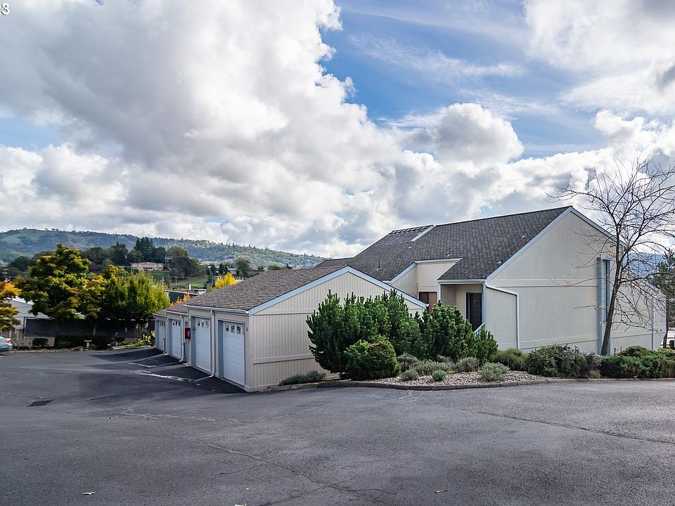 You won't want to miss this completely remodeled home - great for the first time homebuyer, investment property or a vacation residence! This tri-level home has vaulted ceilings and a wall of windows which offer great views of the mountains, city and valley. Enjoy outdoor time from the balcony off the living room or the covered deck off the primary bedroom. In addition to the two bedrooms, there is a large loft upstairs with a closet, which has been used as a 3rd bedroom. There are granite countertops throughout the kitchen and both bathrooms, LED lighting, new ductless heating and air-conditioning, all new flooring and much more! All NEW stainless steel LG appliances in the kitchen and LG washer and dryer are included. Plenty of parking in your garage or designated parking spot. The HOA fee covers ALL exterior maintenance, including roof, paint, decking, landscaping and the swimming POOL. Convenient location, close to shopping and medical. Only 90 minutes to the Pacific Ocean and only 90 minutes to the snow, Roseburg is a great town, located in the "banana belt" of Southwestern Oregon. You're going to love it here!