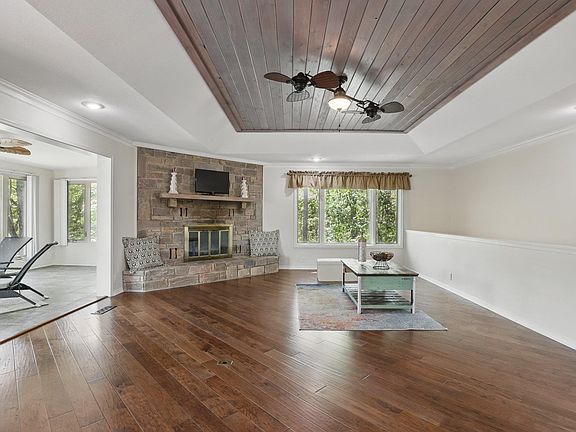 This 4-bedroom, 3-bath beauty is tucked into a deep-water cove with everything you need for full-time living or weekend escapes. Two spacious decks—upper and lower—offer lake views and seamless indoor-outdoor flow. Entertain with ease, then take the paved golf cart path to your covered boat dock (with lift) for a sunset cruise. Inside, you’ll find generous living spaces, open floor plan, a cozy fireplace, and tons of storage throughout. The coveted 3-car garage is a rare find on the lake, perfect for all your toys, don’t miss the lower-level workshop! Whether you’re hosting the crew or enjoying quiet mornings by the water, this home is built for lake life! Lakefront Living on Lake Balboa!
