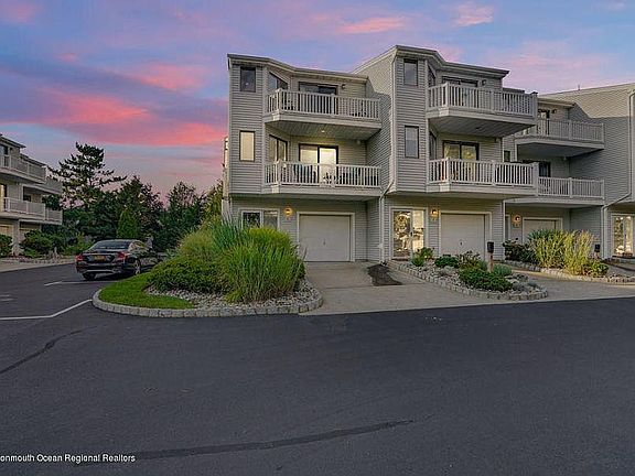 Welcome to Sea Winds, a gorgeous pet friendly community on the Shrewsbury River. Bright END unit oasis with a 25' BOAT SLIP included! 3 bedroom, 3.5 baths, 1 garage, 4 balconies, patio. Multiple Skylights & 2 large glass atriums. Large family room w/gas fireplace. Kitchen w/high end BRAND NEW SS appliances. quartz counters (2019). 1st floor (Marble Tile) & 2nd floor tile renovated 2019. New attic fan 2020. Waterfall from skylight in MB. Rare townhome backs to woods w/ abundance of privacy. Central vac. 1 Reserved parking spot in addition to driveway. Newest section of Sea Winds II. 2 Zone AC & Furnace all replaced in 2018. Complex includes gorgeous pool & tennis courts. 0.7 miles from the beautiful Long Branch beaches. 12 Minutes to NYC Ferry. 45 Min ferry to Wall St.
