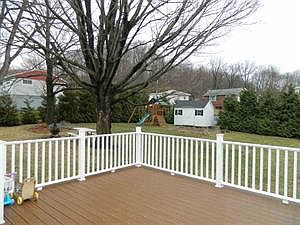 This charming Cape Cod home has a great open floor plan with hardwood floors and arch doorways. Updated bathroom with double sinks. Privately tree lined yard is perfect for entertaining on the new deck! Oversized garage, updated Buderus heating system and more! This one will not last long!