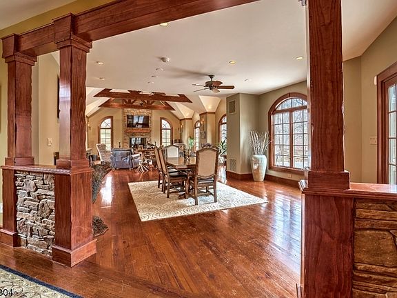 Craftsmanship in a Tranquil Setting Craftsmanship abounds in a beautiful custom-designed home located on a cul de sac in bucolic Mendham Township. Nestled near a stream-fed pond, it includes high-end features and exquisite interior design elements. Natural materials including tiger wood, quarter-sawn oak, pine, granite and stone create a sense of serenity and tranquility, giving the layout an organic, effortless feel. From the moment the home is introduced by a dramatic two-story foyer with a wraparound staircase, its special qualities are revealed. The heart of the home is an oversized great room anchored by a massive wood-burning stone fireplace. Custom hand-hewn beams and trestles complimented by Palladian windows bring an air of the outdoors inside, while rustic sconces located throughout impart a warm ambiance. French doors lead to the outdoor amenities, making this room perfect for intimate or large groups. Adjoining the great room is a one-of-a-kind cook's kitchen. The center island is ideal for baking, food prep, socializing or dining. A Wolf gas cooktop, two Wolf wall ovens, two dishwashers, a farmhouse copper sink and Thermador refrigerator /freezer are notable features. Custom granite-topped cabinetry includes a gorgeous hutch, and a nook suitable for a home office or paperwork completes the kitchen. Filled with natural light from Palladian windows, a unique dining room is lined in stone wainscoting. Among the desirable features are the four en suite bedrooms on the first and second floors. Upstairs, the master suite features a gas fireplace and sitting room. The adjoining master bath has a soaking tub and two separate sinks. Each of the other bedrooms is oversized and connects to an exquisitely tiled bath. A recent addition to the grounds is a freeform gunite pool with stamped concrete decking. The pool overlooks the large pond fed by the headwaters of the Raritan River. Woods cover a portion of the seven acres along with an expansive lawn area and an outbuilding that can easily serve as an artist studio or gardening shed. The magnificent acreage is a short distance from the Patriots Path Trail, providing ample opportunities to enjoy sights and sounds of the great outdoors. Award-winning schools, easy access to Morristown's Midtown Direct train station and highways, plus close proximity to shops and restaurants make this centrally located custom home a rare find.