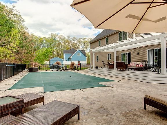 Ideally located on quiet cul-de-sac with easy access to all area amenities as well all major highways and commuter rail to Boston. Great location for attending all levels of Grafton public schools. Newly built by the current owners in 2000, this wonderful family home offers 4 bedrooms, 3 full baths and one half bath on the first floor. The large eat-in kitchen offers cherry cabinets, granite counters, breakfast bar and stainless steel appliances. Adjacent to the kitchen is a large family room with cathedral ceilings and sliders leading to the huge 16 x 32 patio with pergola overlooking the pool deck. Formal living room with fireplace adjacent a large formal dining room. located on the second floor are 4 bedrooms, including the large master with en-suite bath and walk-in closet. Partially finished basement with full bath and built in sauna!! sprinkler system, shed, and two car attached garage.