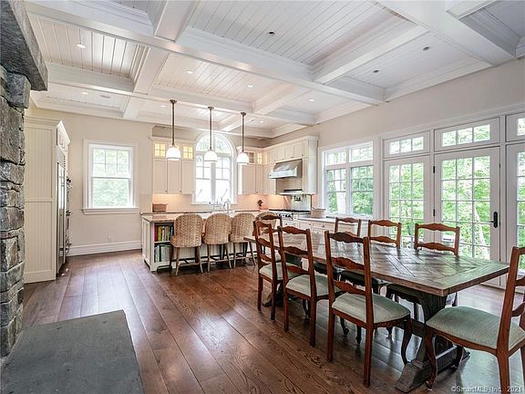 Beautiful shingle style cape in Washington Connecticut privately sited on 5+ acres. Come enjoy this spacious, 5 bed, 5.5 bath, custom built home with high end finishes throughout. The house features a large open kitchen and dining room with soaring 11ft ceilings. Kitchen is equipped with Viking / Sub-Zero appliances, double ovens, 8 burner range, multiple sinks & dishwashers, large stone fireplace and access to west facing terrace with seasonal views over steep rock well suited for outdoor dining. Off the kitchen is a large entryway with mudroom, laundry room, walk-in windowed pantry, closet and cubbies. The kitchen also connects into a cozy living room, as well as a large open family room, both gorgeous fireplaces. The first floor also contains a large, main bedroom suite, the first of 5 en suite bedrooms. Upstairs you will find a second large main bedroom, which includes a relaxing lounge area. There are 3 additional en suite bedrooms on the second level. The 5 bedrooms are set up with 3 king, 1 full and 2 twin beds. There is an unfinished basement for storage, as well as 1+ car attached garage and 2 car detached garage. The house is conveniently located within walking distance to a back entrance of Steep Rock for great hiking. Short drive to town, the Green, The Mayflower Inn and everything that Washington has to offer. Many trees have recently been removed and the house gets great light. Flexible Rental terms (holidays, ski rental, academic year, etc.).
