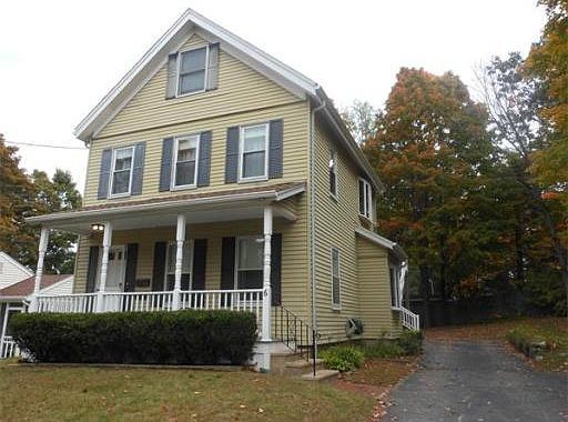 Wonderful, quiet west side neighborhood for this well maintained two family home! Separate utilities. One Heating system is gas, one is oil. Both are older. Could convert oil heat to gas, there are two gas meters. 1st floor unit has 2 or 3 bedrooms and is dated, but rented for $1300 mo. until just recently.. 2nd and 3rd floor unit has been wonderfully remodeled to include a large deck overlooking yard. Cathedral ceiling with skylights adds an open and airy feeling to the kitchen.Spiral stairs to finished 3rd floor loft bedroom or office, with A/C, 1 bedroom on second floor level, and an office. This unit is rented for $1400 mo. TAW. Newer roof. A real nice, large, level yard. A short distance to commuter rail to Boston and great highway access make this home desirable to both the investor and the owner occupant!