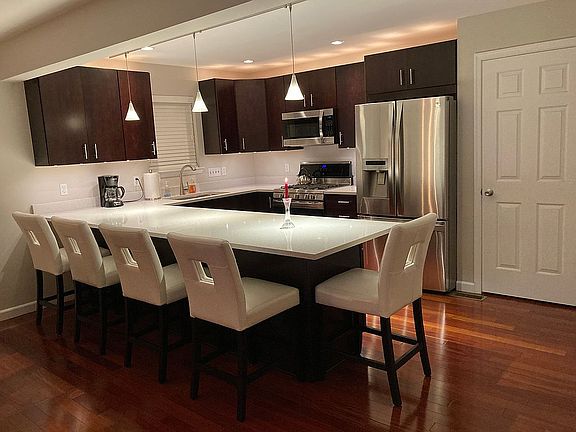 Full ¾” solid Brazilian Cherry hardwood floors throughout entire first floor. Living Room/Dining Room combo opens to Kitchen and Deck with views of private wooded backyard. Open eat in Kitchen with pantry featuring Brazilian Cherry cabinets, Quartz countertops, double oven, and all stainless-steel premium “Kenmore Elite” appliances. The 1st floor also includes a ½ bath with waterfall faucet and vessel sink, as well as a full-size coat closet.