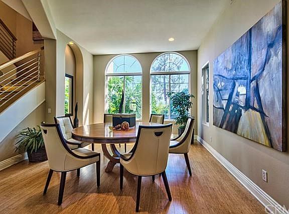 Spacious and beautifully updated, this 3600 square foot, 5 bedroom, 5 bathroom home is located on a Single Loaded cul-de-sac in the highly desirable Palacio neighborhood of Marina Hills. The home was remodeled and expanded to feel like a Contemporary Custom Design. Gorgeous Canyon Views and direct Ocean Breezes from the backyard patio with a Resort like Pool and Spa are great for entertaining. This home has a stunning living room and formal dining room with Elegant Modern Décor. The large Gourmet Chef's Kitchen opens to a family room and casual dining area and is updated with granite island/counters, maple cabinets, and top of the line appliances. Other features included a fireplace and retreat in the master suite, a main floor bedroom, wired for sound inside and out, and an upstairs media room with surround sound system. Interior