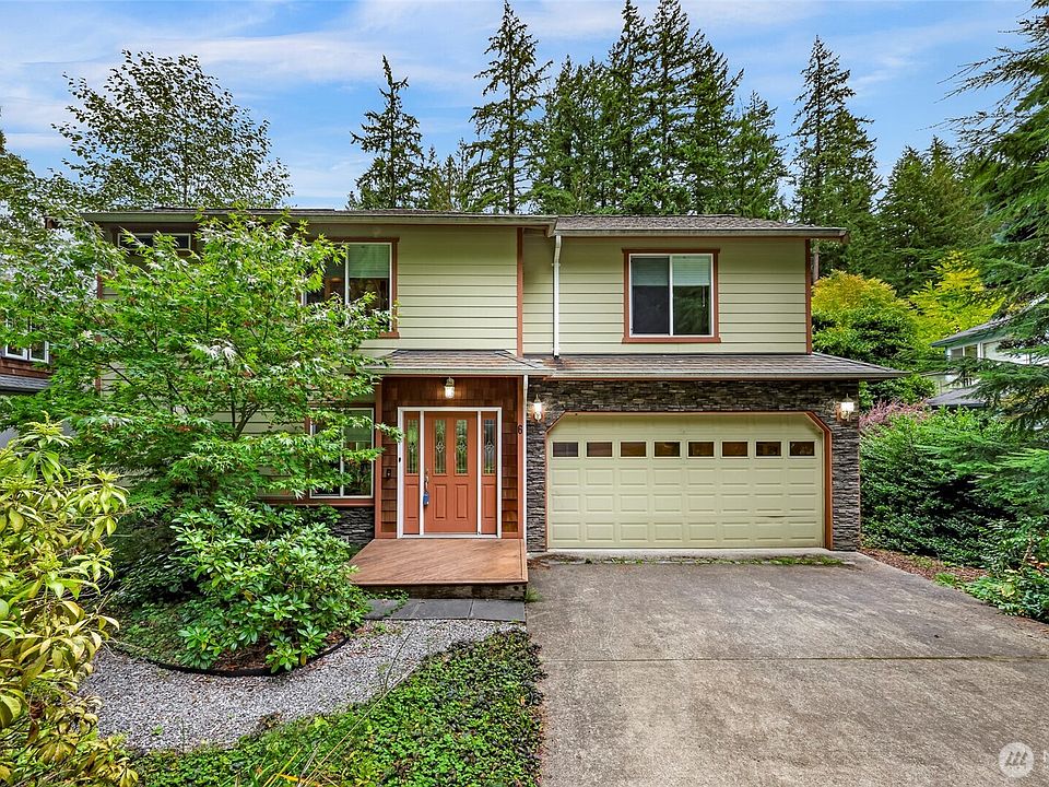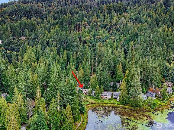 Backed by green space and Lake Louise, this Sudden Valley home sits in a peaceful setting with direct access to one of the area’s most scenic walking trails. Hardwood floors, stainless steel appliances, and an open main-floor layout create a warm and functional living space. All bedrooms are located upstairs, including a spacious primary suite with a large bathroom and walk-in shower. Air conditioning ensures year-round comfort, while the sounds of birds and views of the lake add to the charm. With easy access to nature and resort-style amenities, you'll feel like you're on vacation every day. Community amenities include two swimming pools, a golf course, parks, playgrounds, pickleball courts, a marina, Lake Whatcom access, and more.