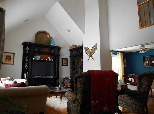 What a fabulous contemporary in a wonderful neighborhood with deeded rights to Thompson Pond. Owner has done a lot of work since their ownership including all new windows, propane range, whole house fan, some lighting, updated baths and a pellet stove which cuts heating bills tremendously. Nice layout with cathedrals in the fireplaced living room. First floor laundry and new slider to deck with private wooded back yard. $100 per year HOA for Thompson Pond beach area.
