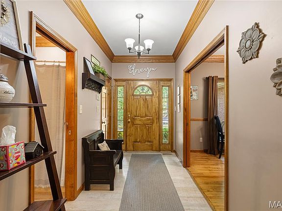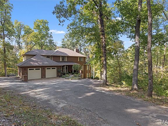 Nestled on a private country road in beautiful Washington, Missouri, 6 Oak Ridge Dr. is a spectacular five-bedroom, 4.5-bathroom custom brick home set on three serene acres. This stunning property offers exceptional curb appeal with a spacious two-car garage, large parking area, and attractive landscaping.