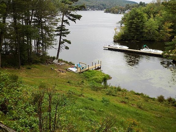 Waterfront ranch style house on fully recreational Hamilton Reservoir. There is plenty of living and storage space in this 2000 sq. ft. home. Open living room/dining room area has a cathedral ceiling and large brick fireplace with an excellent view of the lake. The finished lower level has a family room with a fireplace and a dedicated space for a home office. The house sits on 1.6 acres and has 175' of lake frontage. A new oil furnace was installed in 2017 and a water treatment system in 2015. The kitchen and baths were also renovated in the past few years. The lake facing deck expands the entire length of the house and has additional space for grilling and out door dining. The land slopes down to the lakefront where there is a newer dock where you can enjoy boating and swimming. The house is priced below the assessed value as some maintenance items need to be done. A truly rare opportunity for a large private lot, 175 feet of lake frontage, and a home with a 2 car garage.