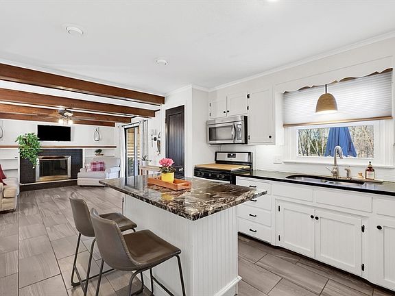 - Features: Beamed Ceilings, Flooring - Stone/Ceramic Tile, Dining Area, Countertops - Stone/Granite/Solid, Countertops - Upgraded, Kitchen Island, Cabinets - Upgraded, Open Floorplan, Remodeled, Stainless Steel Appliances