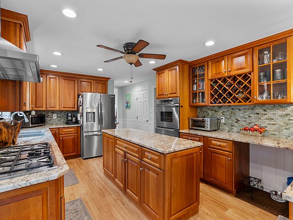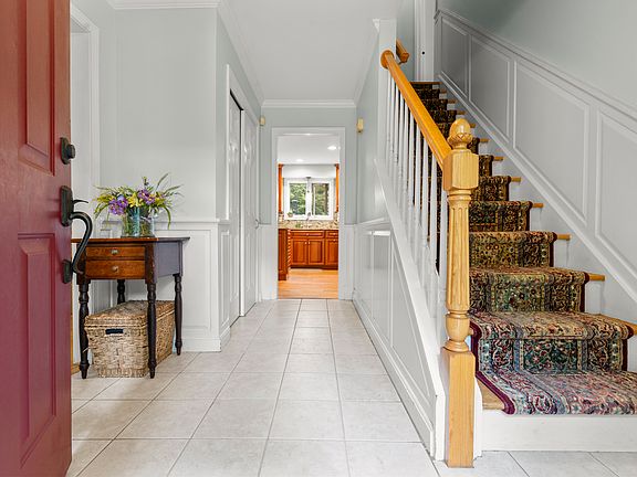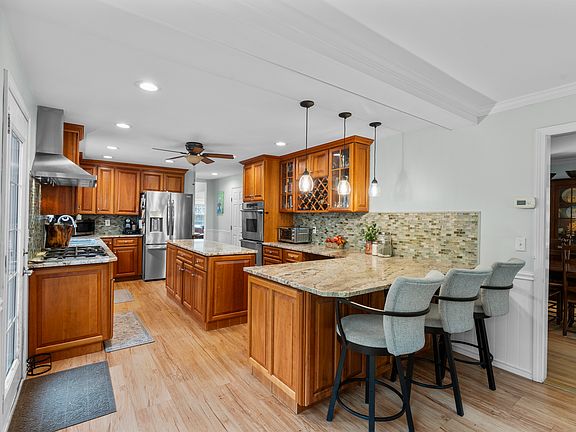 Welcome home! This splendid four bedroom Colonial home is tucked away, set on 2+ acres in Sandy Hook, surrounded by nature. Traditional entry w/ coat closet, formal dining room (can also function as a formal living room). Kitchen is stunning! Granite countertops offer plenty of workspace, overhang for informal seating at peninsula. Center island. Stainless appliances, gas cooktop. Kingswood cherry cabinets, providing ample storage! Dinette area w/ recessed and pendant lighting, as well as lots of natural light. Bay window that slides open on left & right, amazing area for plants to thrive year-round! Walk out to deck (stairs to yard). Pantry/linen closet. Half bath w/ laundry. Living room also has a bay window, wood-burning fireplace with built-in shelves, oversized slider to deck (stairs to yard). Upper level has three standard bedrooms; one has walk up access to attic. Full bath access from hallway. Primary bedroom is its own retreat! Gas, log fireplace, built-in cabinetry, linen closet & walk-in closet. Oversized half-moon window is a beautiful feature, day or night! Full private spa-like bath w/ pocket door, soaking tub set alongside oversized casement windows, double vanity, spacious glass steam shower with great features! Unfinished basement with generous storage area, secondary hook up for laundry, walk out to yard, access to deep two-bay garage (220 amp panel, generator hookup). Rolling backyard with lots of nurtured shrubbery, plantings, trees. Swing set, shed.
