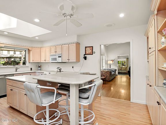 Lovingly maintained, beautiful property in wonderful Riverside location. Spacious, open and bathed in sunlight, this home on an oversized lot offers so much. You will find easy living with comfortable spaces for all including 3 bedrooms, 2 full baths, options for a first floor or lower level family room, amazing eat in kitchen with center island and skylight , separate eating area with access to outdoor entertaining on the spacious deck. You may also appreciate having a full bath on first floor, hardwood floors, a beautiful brick fireplace, vaulted ceilings and a cozy family room with easy access to the yard. On the lower level you will find a bright playroom or family room, a separate laundry room, a large storage room that could be finished for a great game or media room.