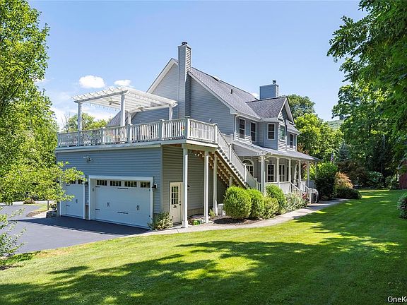 Attention to detail is an understatement when it comes to this 4200 square foot, meticulously maintained extended one family Colonial style home. The main part of this beauty has 3 bedrooms, 2.5 baths with an office and the lower section has an extended one bedroom with living room, bath, kitchen and walk out for separate entrance. Enjoy the peace and serenity of the creek across the street and perfection of the mature, manicured landscaped yard. As we walk through this fine home you will notice beautiful hardwoods throughout the main floor, large spacious rooms, ample room on your front and back porches and surround sound system so you enjoy your music seamlessly throughout the main floor of your home. You also have plenty of time to enjoy the upper deck with the pergola, fans and lighting for amazing entertainment which is over your 3 car garage with 13 ft. ceiling and epoxy flooring. The garage has a gas line to add heat, LED lighting and foam insulation for the car enthusiastic to hang out. There are so many features that this original owner added and some include woodburning stove in living room, central air, 5 ft. width stairway, central vacuum, survey, Viking stove, granite counters, double oven, double door primary suite entry with ensuite to include soaker tub with pump with heater, palladium windows in bedrooms for added natural sunlight, 8 TV hookups throughout the house, huge attic for storage and attic fan with temperature control, basement set up for surround sound, 5 section boiler, 330 gallon oil tank, generac and so much more. You will not be disappointed viewing this property. Plus it's close to 84 and Taconic for easy commuting if necessary. Come fall in love!