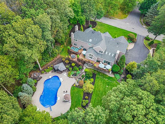 5326 Sq Ft Colonial situated on 1.4 acres, totally private back yard with heated in-ground pool, cabana, 2 tiered Trex Deck overlooking amazing sunsets. 5 Bedroom, 5.5 baths, 3 garage, 2 story foyer w/spiral staircase, LR, and DR, Guest Suite with Bedroom and Full Bath, 2 story Library w/Fireplace and Built-in bookcases, palladium window, huge open kitchen, all stainless appliances, granite, Thermador- 6 burner/oven, pot faucet, Sub Zero plus LG refrigerators,center isl,,and Dining Area w/ fabulous windows/skylights, Family Room w, skylights and tumble marble FP, 2nd floor Master Bedrm w tray ceiling, bath with steam/bidet/Jacuzzi, ,lounge area w. gas FP, 3 additional large bedrms,1 ensuite, 1 with playrm, full finiished WO Basmt w/full bath,Office/RecRoom.