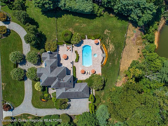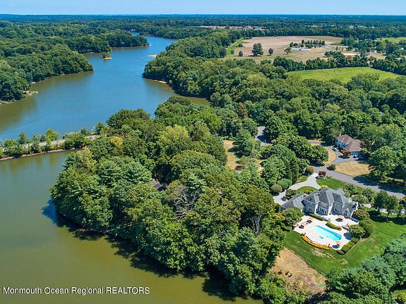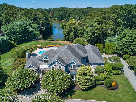 Magnificent waterviews! For the discriminating buyer this custom-built home is just the one you are looking for with over 7,000 square feet including finished basement. Located on one of the most desirable streets in Colts Neck is this majestic stone 5 bed, 5.5 bath estate situated on nearly 1.6 acres of meticulously maintained landscaping. Careful attention was given to all details & appointments in the home. Features include wood floors, decorative moldings, radiant floors, beautiful circular paver driveway, high ceilings, French doors, Palladian windows & 3 car garage to name only a few. Upon entering your attention will be drawn to the stunning floating curved stairway. Open floor plan featuring gourmet eat-in kitchen with designer crisp white cabinetry, expansive center island & high-end appliances that opens to a fabulous Great Room, elegant dining room, regal home office/study offers rich wood built-ins, graceful living room with warming fireplace & spacious bedroom with en suite completes the 1st level. Tasteful primary bedroom has a tray ceiling & large walk-in closet. Splendid primary bath offers double sinks, custom tile shower stall & soaking whirlpool tub. Full finished basement will delight the entertainer in you with home gym, wine cellar & TV viewing space. Resort-like backyard will rival any 5-star hotel featuring glistening Gunite, heated pool, spa & beautiful sandstone patio surrounded by mature trees & landscaping. Truly the perfect get-a-way without leaving your own backyard. Living in Colts Neck offers proximity to gorgeous horse farms, beaches, parks, great restaurants & NYC transportation.