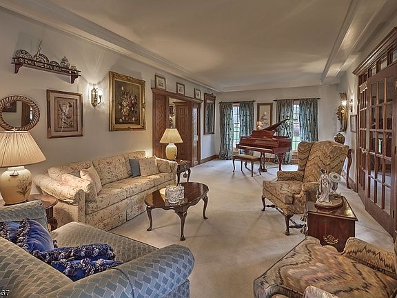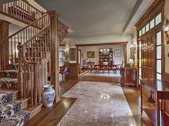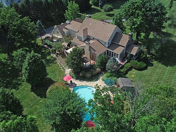Unrivaled Country Living This impressive custom home is nestled amid six acres of lush, park-like lawns and flowering trees on peaceful Orchard Lane where it's just minutes from Oldwick. The timeless façade is a prelude to an interior highlighted by quality craftsmanship and luxurious amenities. Among these are a floating staircase and marble inlaid floor in the elegant entry foyer. An open floor plan moves easily to the dining room, kitchen, living room and library, where box beamed ceilings and wide oak plank floors enhance the grand feeling of this singular home. Another striking feature is the 3,000 square-foot wraparound deck accessed by French doors from the breakfast room, sun room and family room. Multiple dining and sitting areas allow for casual and formal entertaining, seamlessly uniting the interior and exterior living spaces. A true chef's kitchen with ample storage presents a center island, double sinks with brass fixtures, appliances from Jenn Air and Sub-Zero as well as a Dacor gas cooktop and grill. An adjoining breakfast room is perfect for every day dining. Close by are the family room anchored by a floor-to-ceiling fireplace made from local fieldstone, a bright and cozy sun room, and an English-style library with fireplace mezzanine. The service entrance opens to a mud room and accesses the secondary staircase. Upstairs are six comfortable bedrooms, four with en suite baths. The generously-sized master suite containing a master sitting room and gas fireplace is a perfect retreat, as is the spa master bath featuring a designer jetted tub, green marble floors and steam shower which offer pure luxury. At the rear of the house, lavish grounds are enhanced by a free form pool with waterfall and a charming pool house. Both are surrounded by a Tennessee stone patio. This luxurious spot is ideal for al fresco dining and entertaining in total privacy. Tewksbury Township is well-regarded for its excellent schools, outdoor recreation and open spaces. Unique shops and superb dining are locally available. Interstates 78, 287 and Newark Liberty International Airport are all easily accessible, while New York City is 50 miles away.